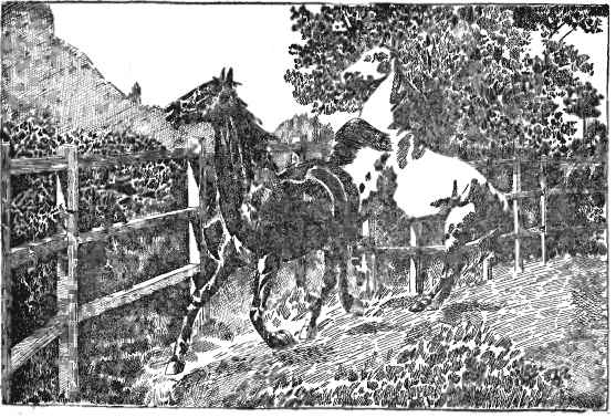There were six young colts in the meadow beside me; they were older than I was. I used to run with them, and had great fun; we used to gallop all together round the field, as hard as we could go. Sometimes we had rather rough play, for they would bite and kick, as well as gallop.