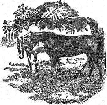 Every one may not know what breaking in is, therefore I will describe it. It means to teach a horse to wear a saddle and bridle, and to carry on his back a man, woman, or child; to go just the way they wish, and to go quietly. Besides this, he has to learn to wear a collar, and a breeching, and to stand still while they are put on; then to have a cart or a buggy fixed behind, so that he cannot walk or trot without dragging it after him; and he must go fast or slow, just as his driver wishes. He must never start at what he sees, nor speak to other horses, nor bite, nor kick, nor have any will of his own, but always do his master's will, even though he may be very tired or hungry; but the worst of all is, when his harness is once on, he may neither jump for joy nor lie down for weariness. So you see this breaking in is a great thing.