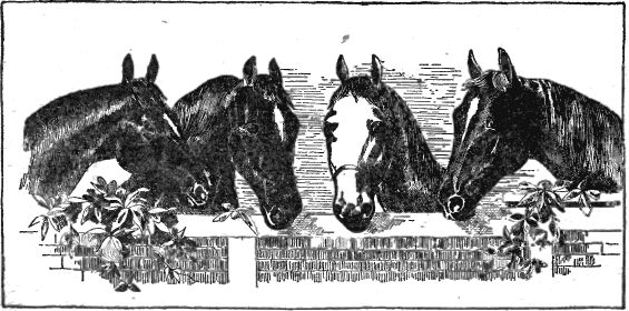It was early in May, when there came a man from Gordon's, who took me away to the Hall. My master said, "Good-bye, Darkie; be a good horse and always do your best." I could not say "good-bye," so I put my nose in his hand; he patted me kindly, and I left my first home. I will describe the stable into which I was taken; this was very roomy, with four good stalls; a large swinging window opened into the yard, making it pleasant and airy.